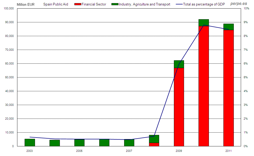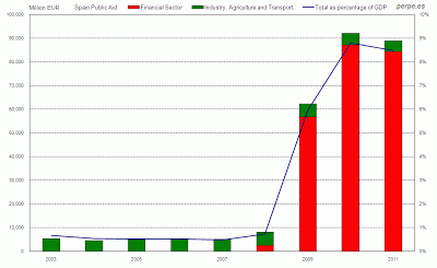 | Ayudas públicas al sector financiero en España desde 2003/2011 Fuente: perpe.es |