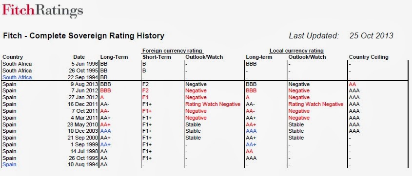 | Histórico de calificación crediticia de España en Fitch 1994/2013 |