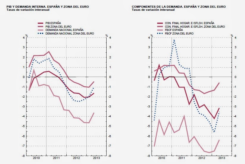 Más aún, el informe afirma que España ha salido de la recesión económica antes de lo previsto. Y tanto que antes de lo previsto, como que no ha salido de dicha recesión.