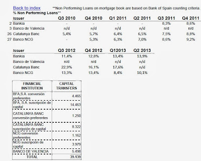 Pondré un ejemplo, Bankia, una vez recibido el rescate de la Unión Europea de 18.928 millones de euros y colocando en teoría sus activos tóxicos en el Banco Malo, redujo su tasa de morosidad en un 1,5%, quedándose en el 7,1%. A partir de ese momento, el primer trimestre de 2012, su nefasta gestión casi ha doblado su morosidad y en el segundo trimestre de 2013 había alcanzado el 13,9%, había conseguido aumentar la morosidad al doble.