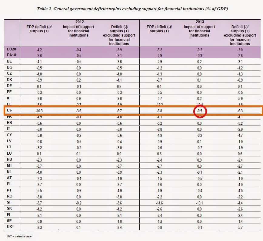 Lo mismo pasa con la compra de activos a la banca a través del FROB o la SAREB, que afectaba a la deuda pública y que se ve reducida en 2013 a 6.981 millones de euros.
