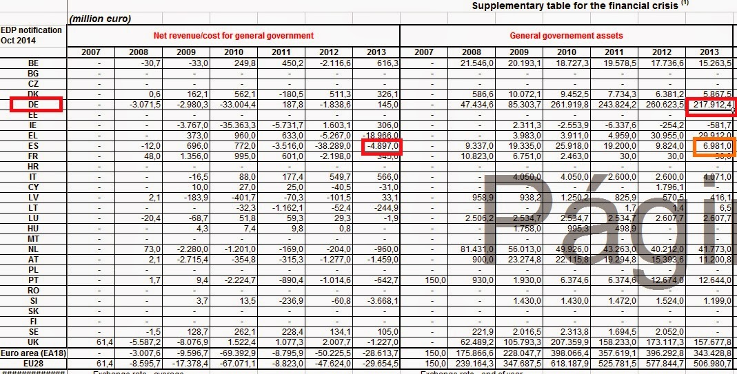 En este sentido de señalar culpables, no quiero perder la oportunidad de señalar que el adalid de la buena gestión económica, Alemania, ha subsididado de manera descarada a una banca quebrada como se puede ver en la imagen, inyectando a la banca cargo de la deuda pública, 217.912 millones de euros en 2013, gracias a los intereses negativos de su deuda soberana, fortalecida por la débil posición de los países rescatados.